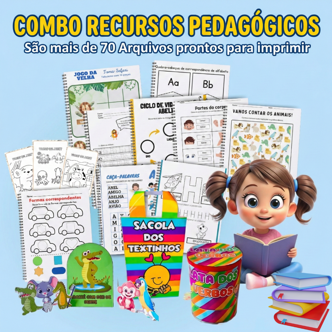 COMBO RECURSOS PEDAGÓGICOS - ALFABETIZAÇÃO E ANOS INICIAIS  × 1 R$29,90